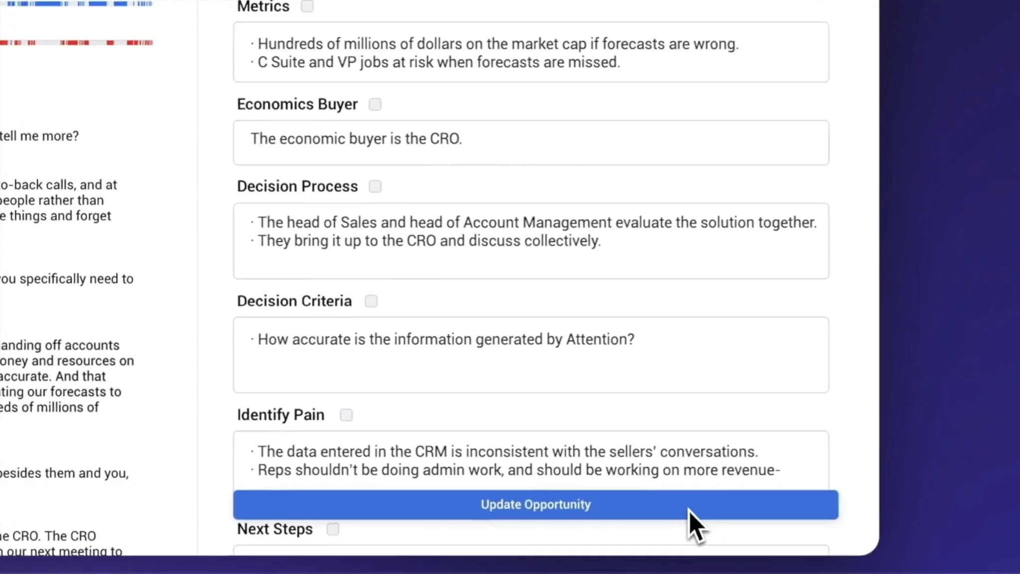 Attention is a real-time voice assistant designed for sales teams. It automatically records and organizes all your sales touchpoints across meetings, emails, calls, and CRMs. This helps sales reps stay focused while capturing important data seamlessly.
