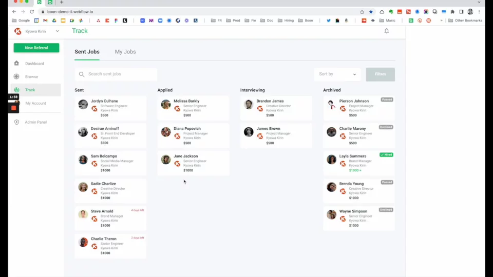 - Automation: Boon automatically turns every job post into an opportunity to source referral hires. We also track referrals status, surface qualified hires, and manage payouts without your team lifting a finger.