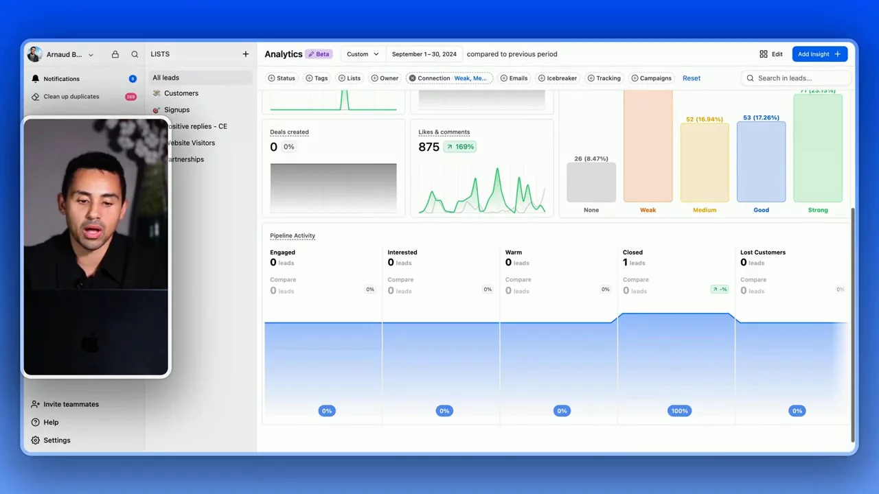 - CRM Analytics: Offers analytics to measure team performance and assess connection strength with leads. (breakcold.com)