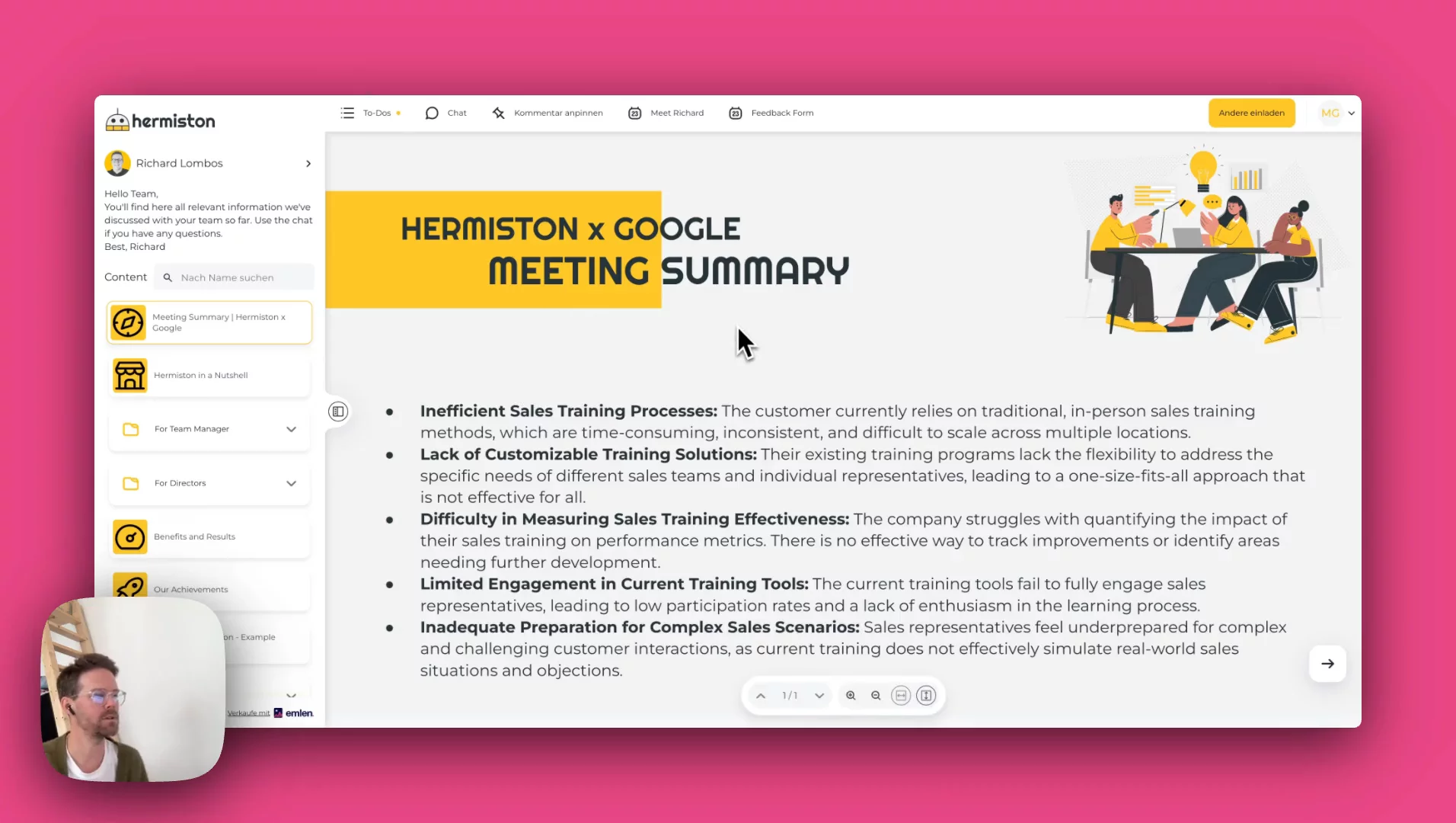 Complex B2B sales cycles generate mountains of fragmented content. Email threads spiral out of control. Presentations get buried in shared drives. Sales teams waste hours hunting for the latest deck while prospects lose momentum waiting for responses.