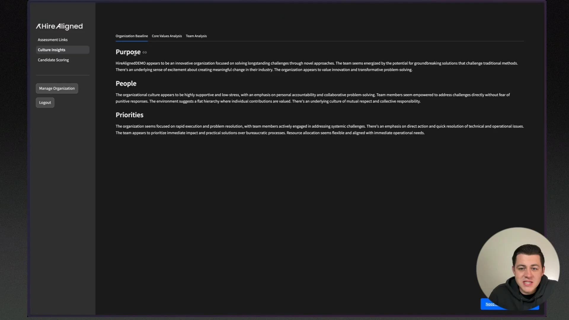 HireAligned is a company that helps businesses understand their team culture and find new employees who fit well with that culture. They use special tests to learn about the values of both the current team and potential new hires, making sure everyone works well together.