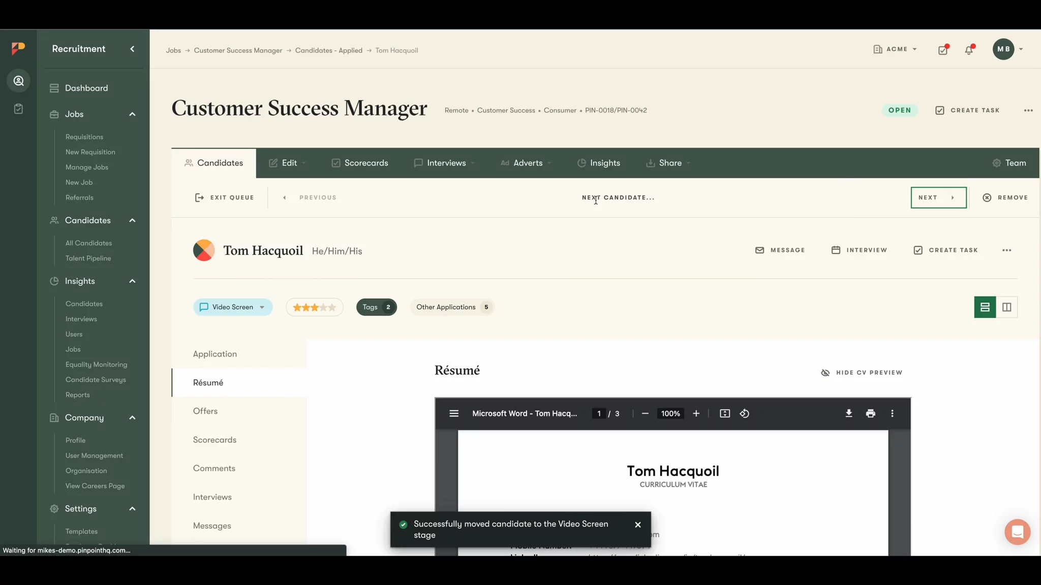 Pinpoint is the Applicant Tracking System that makes complex hiring simpler.About: