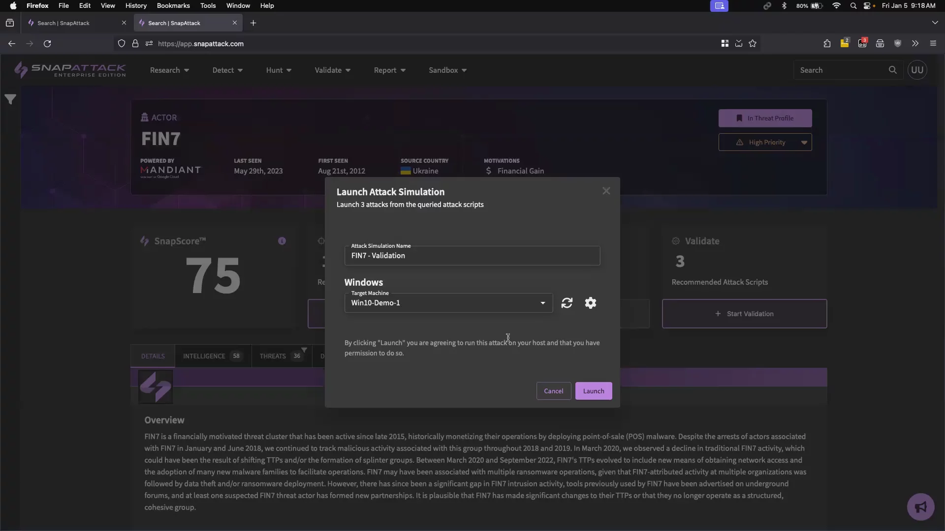 SnapAttack is a Threat Hunting & Detection Engineering platform that enables SecOps & Threat Detection teams to automatically prioritize threats relevant to their organization, identify detection gaps in relation to those threats, and quickly and easily fill those gaps with a growing library of easily deployable high-quality validated detections.