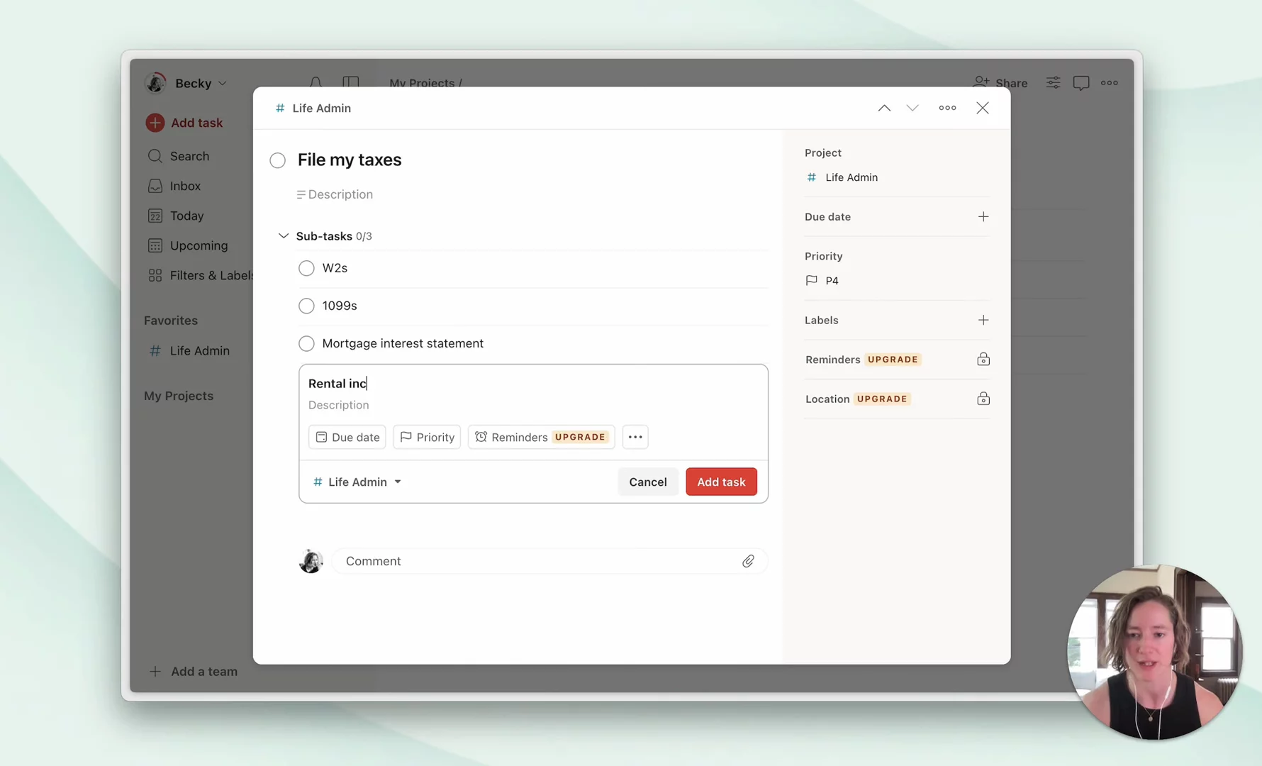 • Projects and Sections: Group related tasks into projects and sections for better organization.