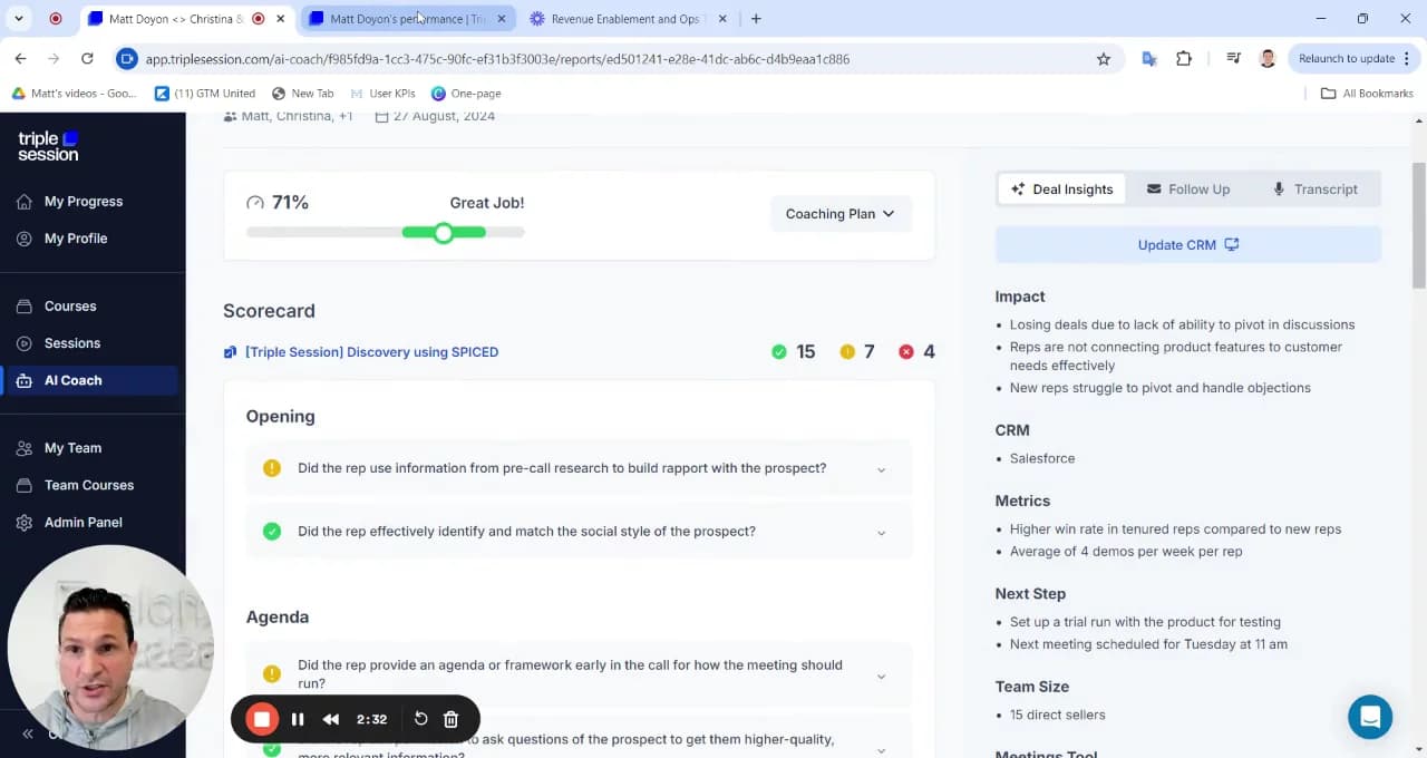 It kills "application fatigue"—that productivity drain from constantly toggling between disconnected tools. Your team stops fighting with multiple logins and starts focusing on what actually matters: closing deals and improving skills. For teams ready to simplify their tech stack without sacrificing results, Triple Session delivers both consolidation and savings in one shot. In this review, we’ll break down how Triple Session works, what sets it apart, and why it’s gaining traction with modern revenue teams.