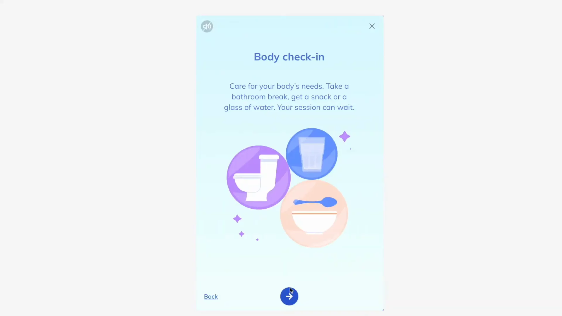 Setting Up Your FocusChoose audio narration, add a preparation step, check in on your mood, enter your task or goal, set the session length, and select an app and website blocking level.